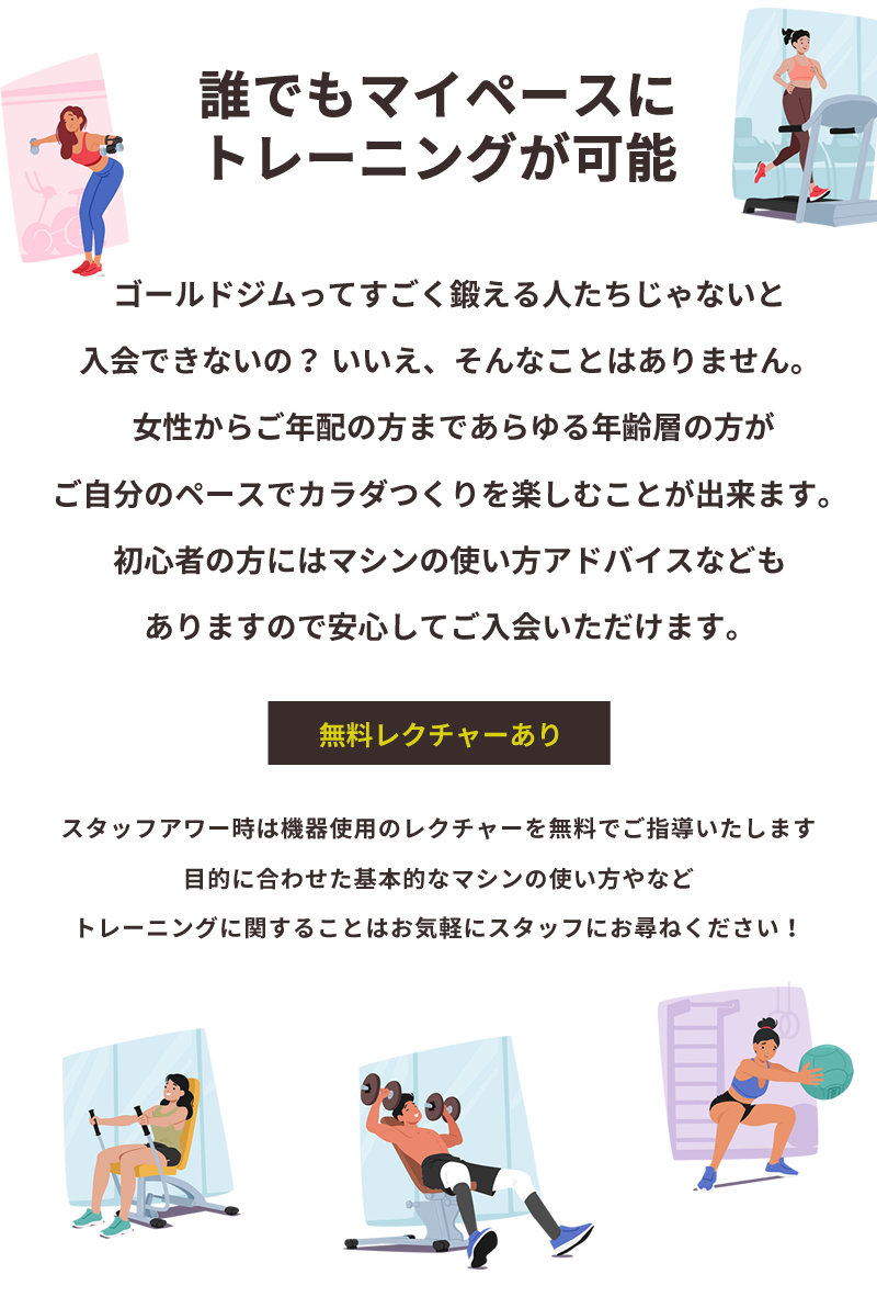 専門トレーナーが丁寧にアドバイスするので初めてでも安心。理想のボディラインを実現しましょう。